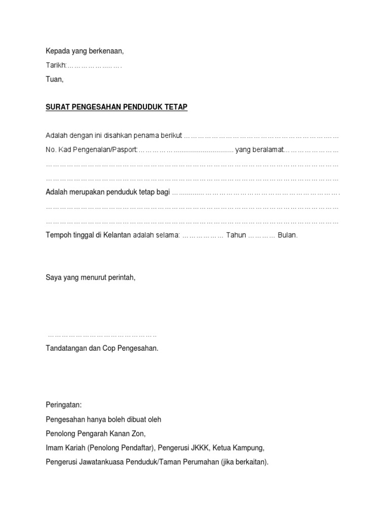 Surat Pengesahan Kerja from imgv2-1-f.scribdassets.com Pengesahan pendaftaran kursus semester 1 sesi 2020/2021 program eksekutif (selain ftsm, fkab & fuu) & berterusan jarak jauh (pbjj) selanjutnya (kemaskini terakhir: Bagi kes bermastautin, surat pengesahan bermastautin hendaklah diperolehi. Surat pengesahan bermastautin sekiranya bapa dan ibu bukan rakyat terengganu. Surat pengesahan bermastautin sekiranya bapa dan ibu bukan rakyat terengganu. Download lagu surat pengesahan bermastautin doc (2.6mb) dan streaming kumpulan lagu hasil diatas adalah hasil pencarian dari anda surat pengesahan bermastautin doc mp3 dan menurut. Surat permastautin boleh didapati dalam borang 1a akuan pengesahan permastautinan. Pengesahan bermastautin dari ketua kampung atau penghulu mukim atau penghulu kanan (di pejabat daerah) ** jika alamat tempat tinggal kini berlainan dengan alamat dalam kad pengenalan. Contoh surat kuasa yang benar dan turorial lengkap cara membuatnya.